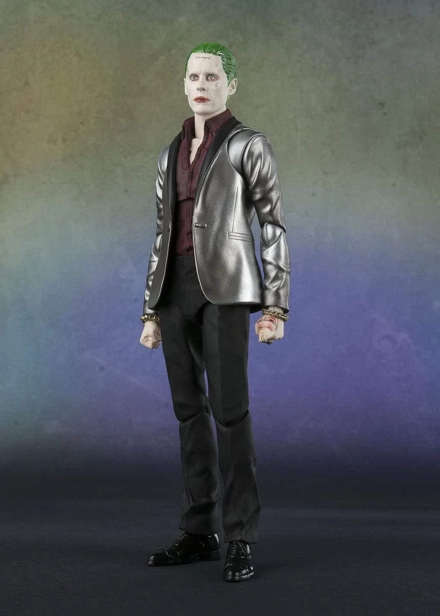 Joker, Erzfeind Batmans und Harley Quinns Partner, als voll bewegliche Actionfigur vonBan Dai. Detailliert bis ins kleinste Detail, sodass man selbst Falten in der Kleidung und die charakteristiche Augenfarbe erkennt. Diese 15cm grosse Figur wird mit zwei Köpfen und zwei Paar Händen geliefert. Zusätzlich enthalten sind die rosafarbenen Pistolen des Jokers.