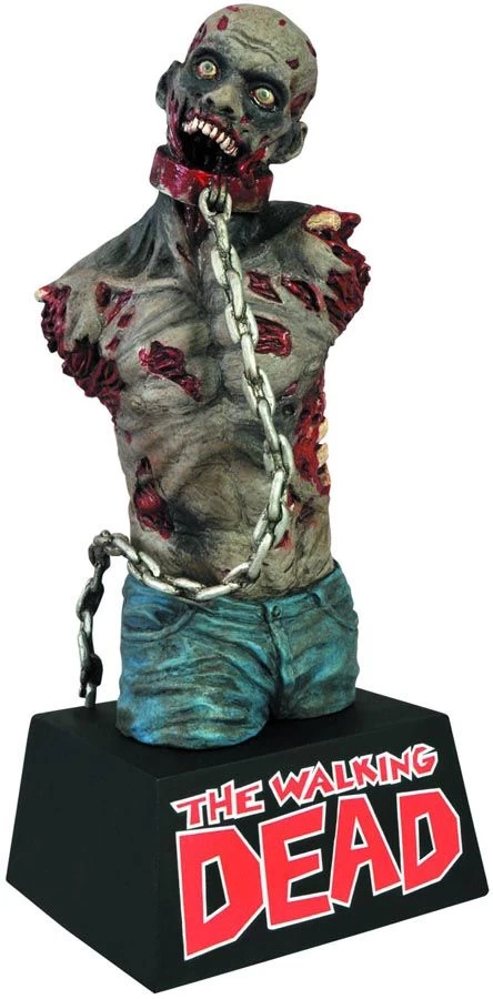 Spardose mit der Büste eines Pet-Zombies (angekettet von Michonne) aus der erfolgreichen Horror-Serie The Walking Dead.