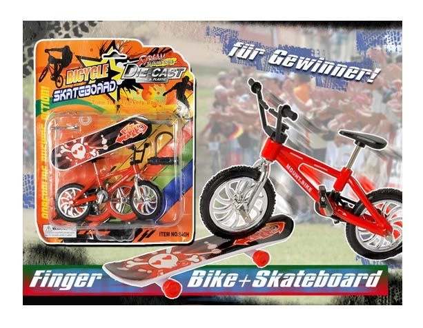 2er Pack mit einem Finger-Mountainbike und einem Fingerboard (zufällige Farben). Verpackung: Blistercard, Hersteller: Fun Trading.