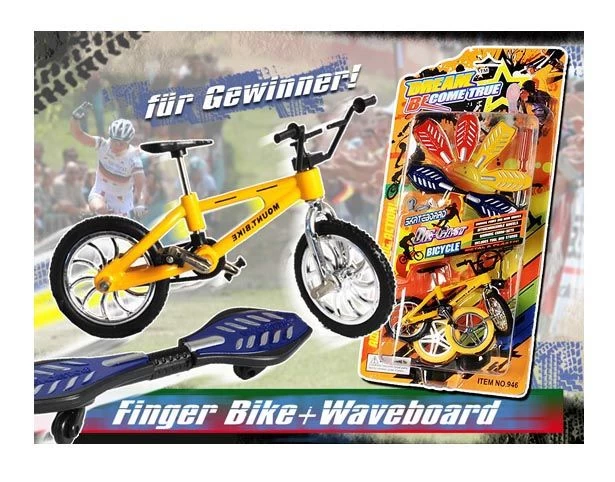 2er Set mit einem Finger-Mountainbike und einem Waveboard (zufällige Farben). Verpackung: Blisterkarte, Hersteller: Fun Trading.