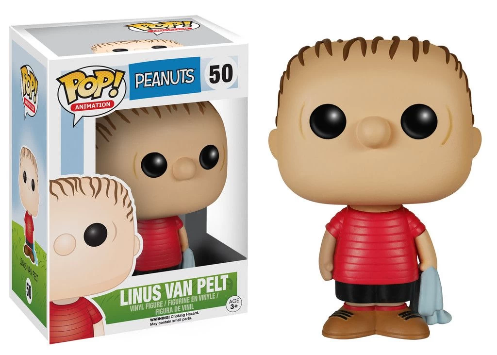 Funko POP! Figur von Linus van Pelt aus der Comic- und Fernsehserie „Peanuts“.