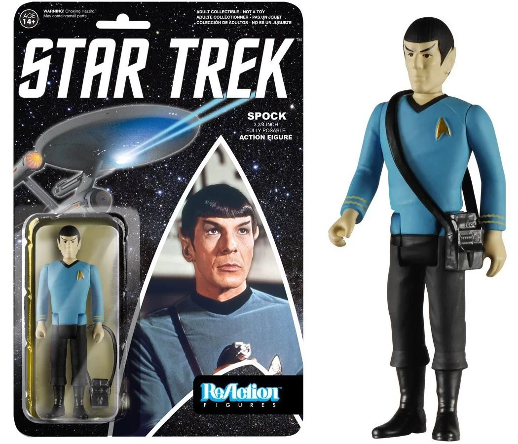 Funko ReAction Actionfigur von Spock aus der klassischen TV Serie Star Trek. Die Figur wurde im Stil der Kenner Actionfiguren der 70er Jahre entworfen.