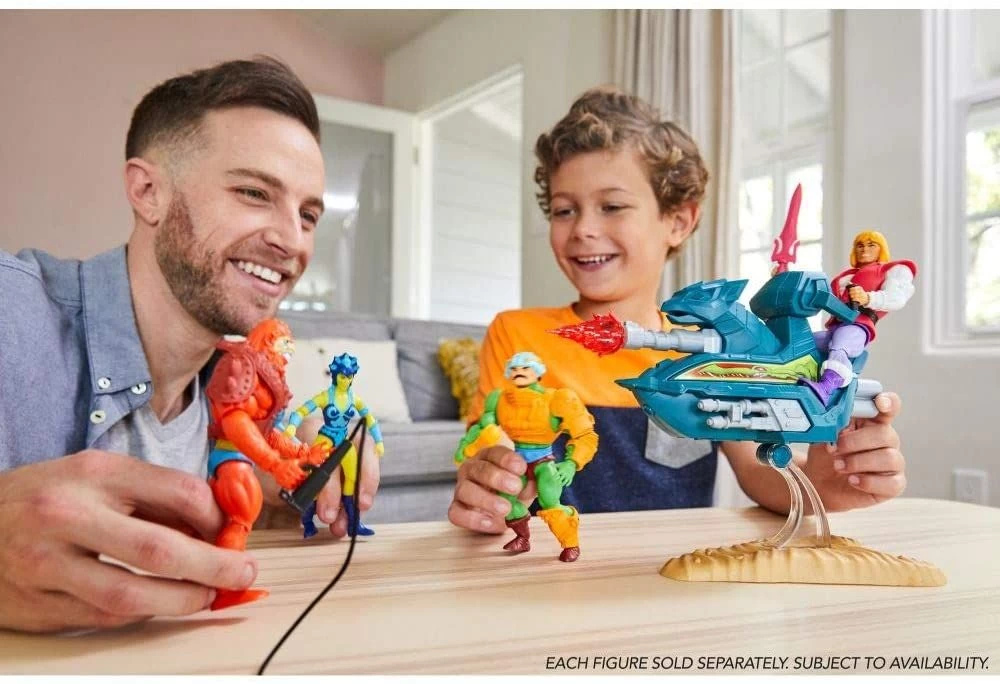 Prince Adam, aus dem „Masters of the Universe“-Universum, mit seinem Sky Sled als bewegungsreiche Actionfigur von Mattel.