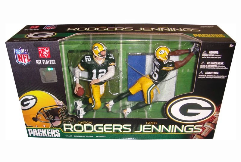 McFarlane 2-Pack mit Figuren der Green Bay Packers Spieler und Superbowl XLV Gewinner Aaron Rodgers und Greg Jennings. Beide Figuren sind ca. 15cm hoch (6-Inch Format) und kommen zusammen in einer Windowbox.